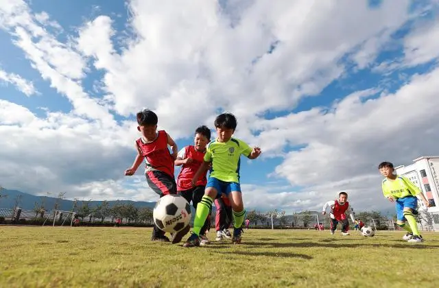 下午课后,云南省大理州洱源县宁湖第二小学的绿茵场上,校园足球队的学生在训练。本报记者 张学军 摄