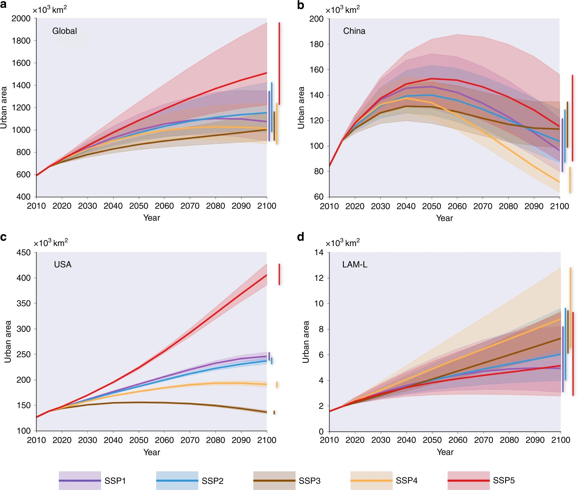 2100年的世界城市空间扩展是怎样的?《自然通讯》(Nature Communication)最近刊发了华东师大地理科学学院黎夏教授团队在全球气候变化领域重要研究进展:预测至2100年,五种情景下全球城市用地空间格局演变,以及对生...