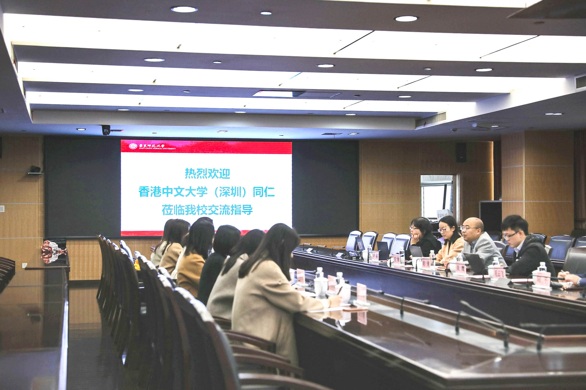 11月24日上午,香港中文大学(深圳)行政事务处处长陆逸、行政事务处行政主管洪玲等一行八人来华东师大调研交流。我校后勤保障部部长赵健、副部长王婧,国有资产管理处副处长吴鹰等出席了座谈会,会议由赵健主持。&n...