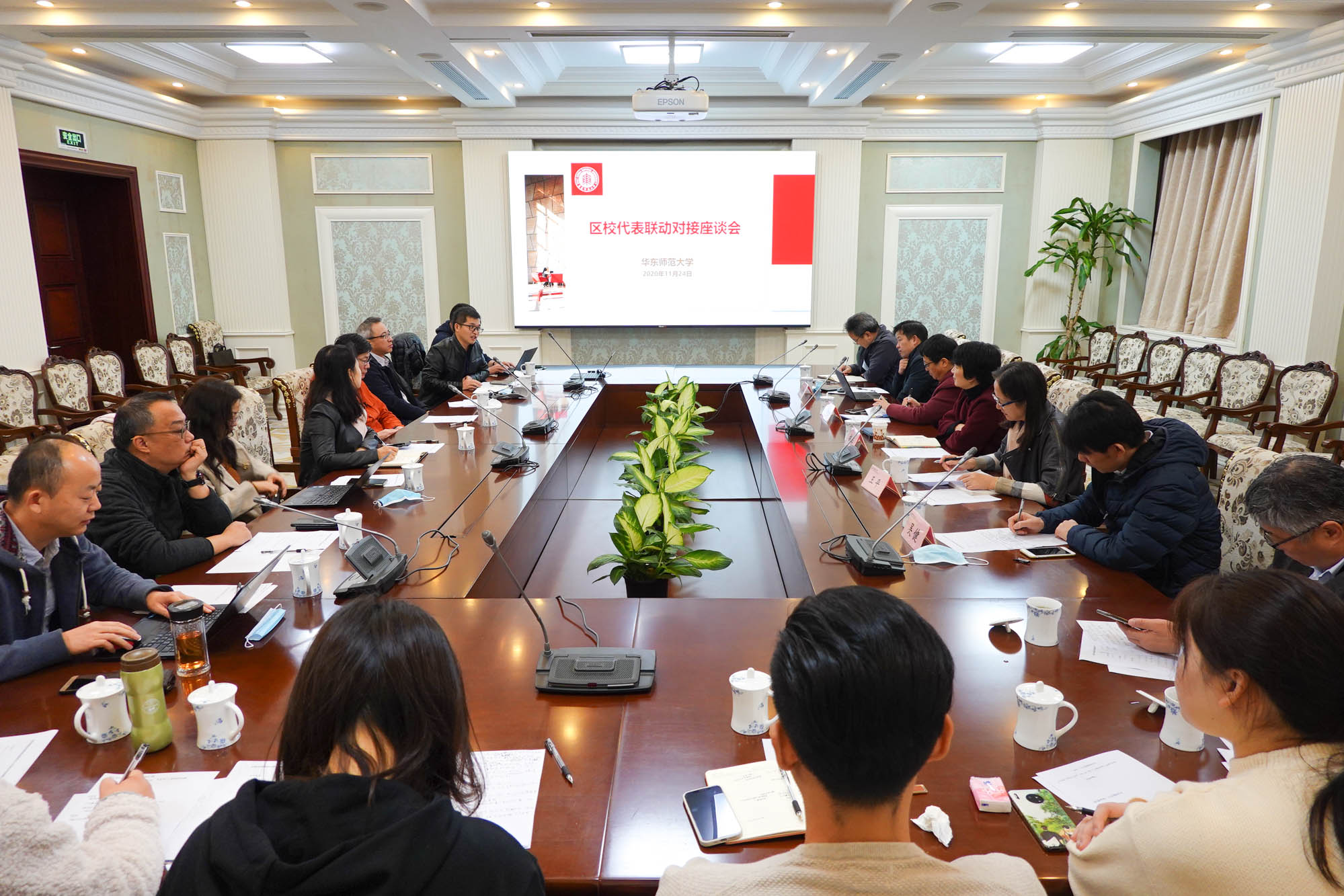 11月24日上午,华东师大在中山北路校区出版社二楼会议室召开了区校代表联动对接座谈会。华东师大普陀区人大代表梅兵、达良俊、吴原元、吴健,闵行区人大代表胡雪梅等与20余位校教代会代表、工代会代表以及学生代表进...