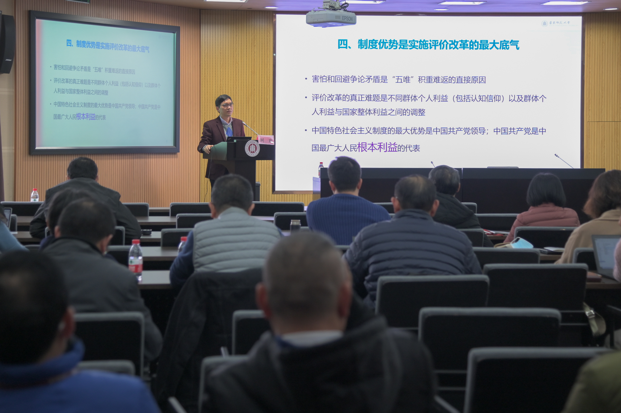 12月23日下午,华东师大学习贯彻《深化新时代教育评价改革总体方案》中层领导人员培训班第二次集中学习,采取线上线下相结合的方式在中山北路校区图书馆二楼报告厅举行。教育学部副主任柯政作了题为《以教育评价改革...