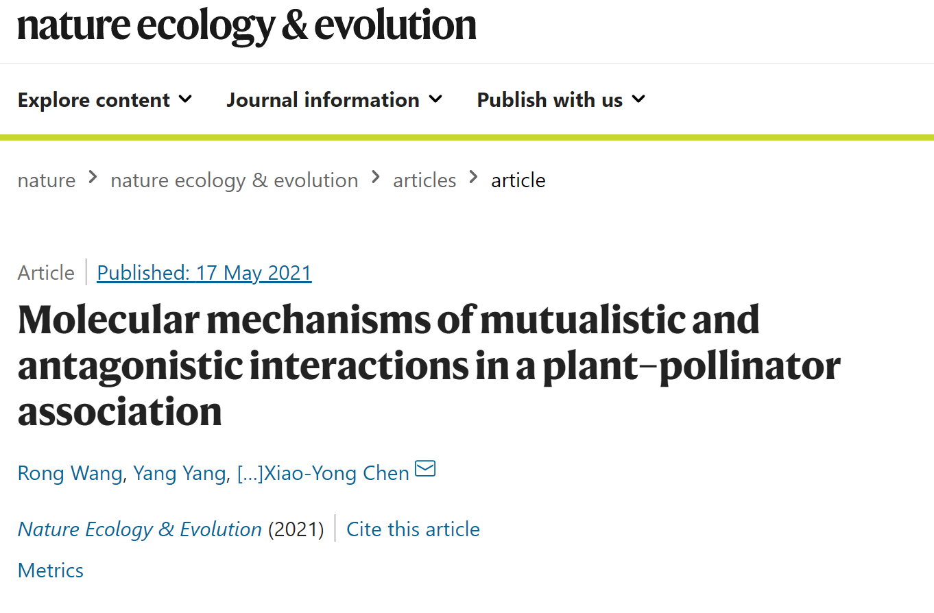 5月17日,《自然生态与进化》(Nature Ecology & Evolution)以长文(Article)形式在线发表了中外20个大学、研究机构35位学者联合发表的题为“Molecular mechanisms of mutualistic and antagonistic interactions in...