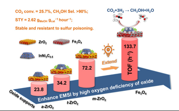 澳门永利皇宫官网入口化学与分子工程学院、上海市绿色化学与化工过程绿色化重点实验室路勇教授课题组在二氧化碳加氢高效合成甲醇的研究中取得重要进展,相关成果《富氧缺陷金属氧化物负载纳米金属间化合物InNi3C0.5用于二氧化...
