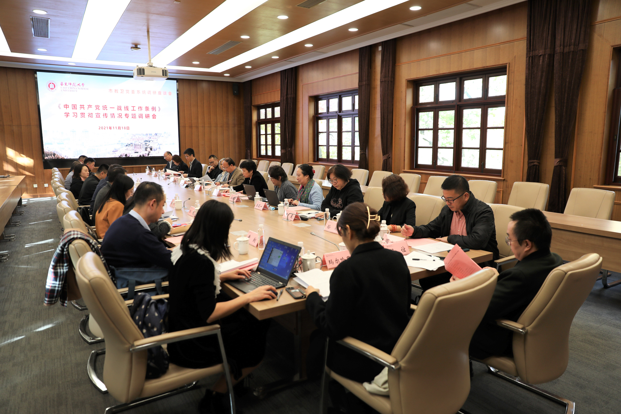 11月11日上午,华东师大在普陀校区办公楼会议室举行2021年度市教卫党委系统党建研究课题中期交流指导会。市教卫党委党建研究会秘书长、高校专委会秘书长顾继虎与会指导,校党委常委、党委组织部长程静参加会议。 华东师大举行2021年度市教卫党委系统党建研究课题中期交流指导会 课题负责人分别作中期汇报 会上,《“四史”学习教育贯穿大中小学立德树人全过程研究》《院系党组织引领激发人才创新活力的机制研究》《深化...