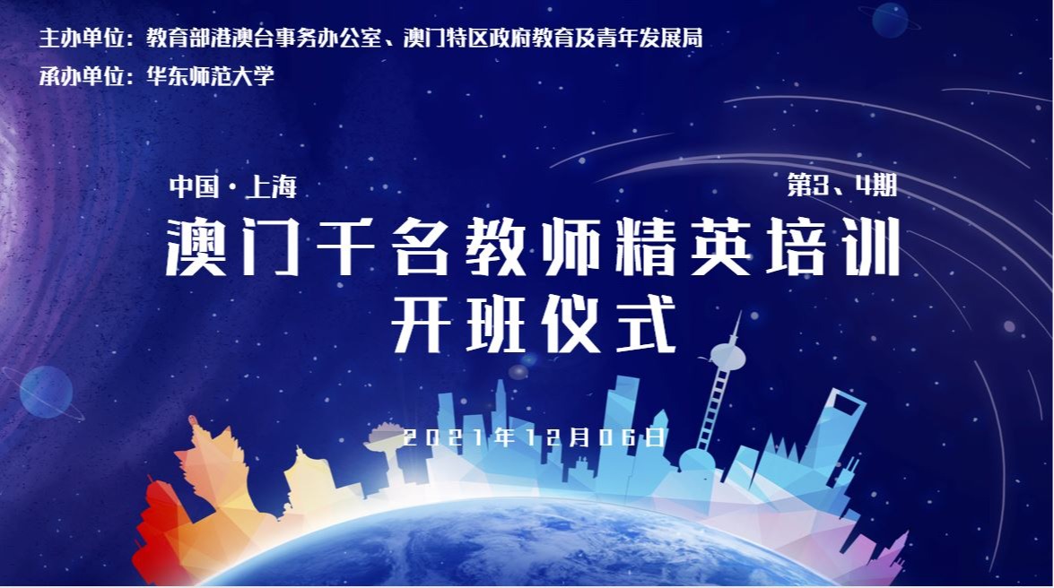 12月6日,澳门千名教师精英培训计划(第三、第四期)开班仪式在澳门永利皇宫官网入口举行,仪式线上线下同步举行。该项目由教育部港澳台事务办公室、澳门特区政府教育及青年发展局联合主办,华东师大承办。华东师大启动第三、四期澳门千名教师精英培训计划 教育部港澳台事务办公室常务副主任徐永吉,澳门教育及青年发展局局长老柏生,澳门永利皇宫官网入口副校长顾红亮,上海市教委港澳台办公室主任吴英俊,澳门永利皇宫官网入口教育学部常务副主...