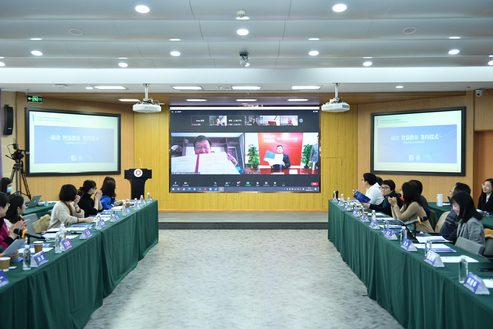 12月11日上午,中文国际传播能力建设创新发展高峰论坛在华东师大召开。论坛开幕式上,教育部中外语言交流合作中心(语合中心)与澳门永利皇宫官网入口在线举行了合作建设“语合智慧教室”协议的签约仪式,这是国内首个签约的“语合智慧教室”。 “语合智慧教室”是语合中心服务全球中文教学的新品牌,它将集合互联网、大数据、云计算、物联网、人工智能、虚拟现实等技术优势用于国际中文教学,更好培养学习兴趣,扩大学习者群体...