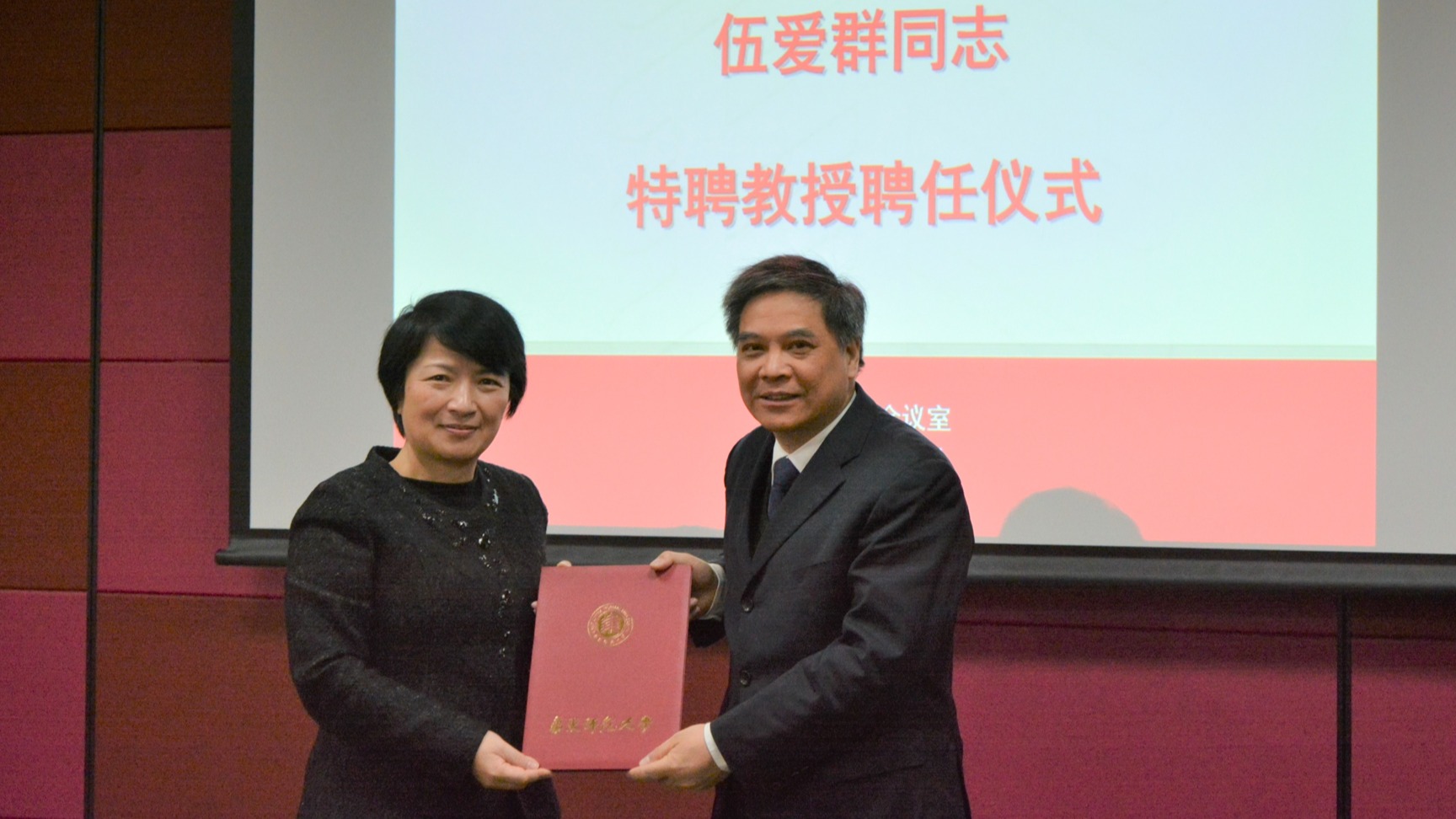 2021年12月30日上午,上海市政协委员、上海市政协经济委员会副主任、上海航天信息科技研究院院长伍爱群受聘澳门永利皇宫官网入口特聘教授仪式在城市发展研究院举行。华东师大党委书记梅兵为伍爱群颁发聘书。华东师大人文与社会科学研究院副院长费斌,人事处副处长战新华,华东师大原党委副书记、城市发展研究院副理事长罗国振教授,城市发展研究院院长曾刚教授,城市发展研究院文新华教授、谷人旭教授等出席聘任仪式。聘任仪式由华...