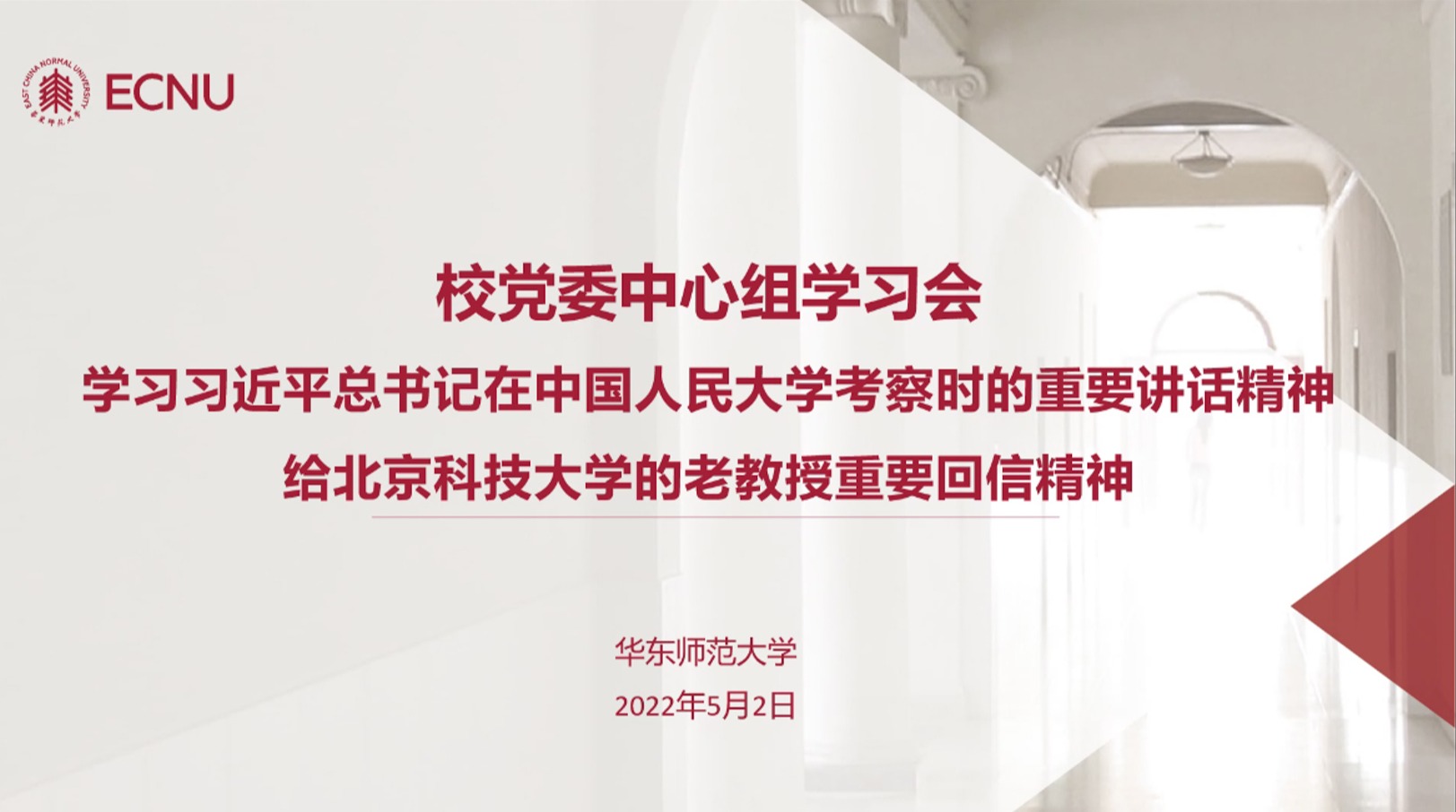 5月2日,澳门永利皇宫官网入口党委理论学习中心组举行学习会,专题学习习近平总书记在中国人民大学考察时的重要讲话精神和给北京科技大学的老教授重要回信精神。 校党委书记梅兵,校长、校党委副书记钱旭红,校党委副书记朱民、杨昌利,校党委副书记、纪委书记曹友谊,副校长周傲英、雷启立、顾红亮,校党委常委、组织部部长程静,校党委常委、统战部部长、机关党委书记王庆华参加会议。校党委书记梅兵主持学习会。澳门永利皇宫官网入口...