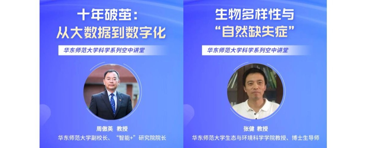 5月21日,由科技处、研究生院和教务处联合举办的华东师大科学系列空中讲堂第二期第五场、第六场举行。华东师大副校长、“智能+”研究院院长、数据科学与工程学院周傲英教授和生态与环境科学学院张健教授来到空中讲堂为师生作分享报告,并通过腾讯会议、华东师大官方视频号、B站进行同步直播。报告会由科技处处长杨海波教授主持。 周傲英教授以“十年破茧:从大数据到数字化”为题,带领师生们回望大数据这十年的发展之路...