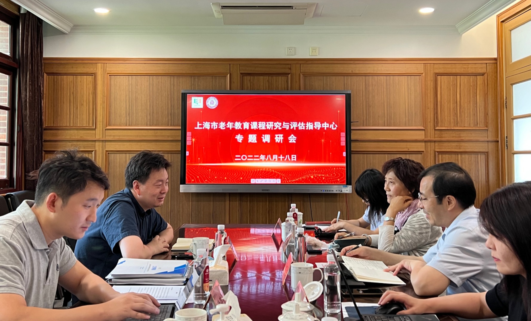 8月18日上午,上海市教委终身教育处处长闫鹏涛和上海市教委终身教育处干部韩保磊到访华东师大,对上海市老年教育课程研究与评估指导中心(以下简称“中心”)开展调研。中心副主任李家成、裴建华,研究室主任马丽华、朱敏等中心成员参加调研会。调研会在普陀校区办公楼会议室召开。 本次调研聚焦于老年教育课程研究与评估指导中心自成立以来开展的系列研究工作,对后续工作任务和研究规划作了整体设计,并对具体研究事项...