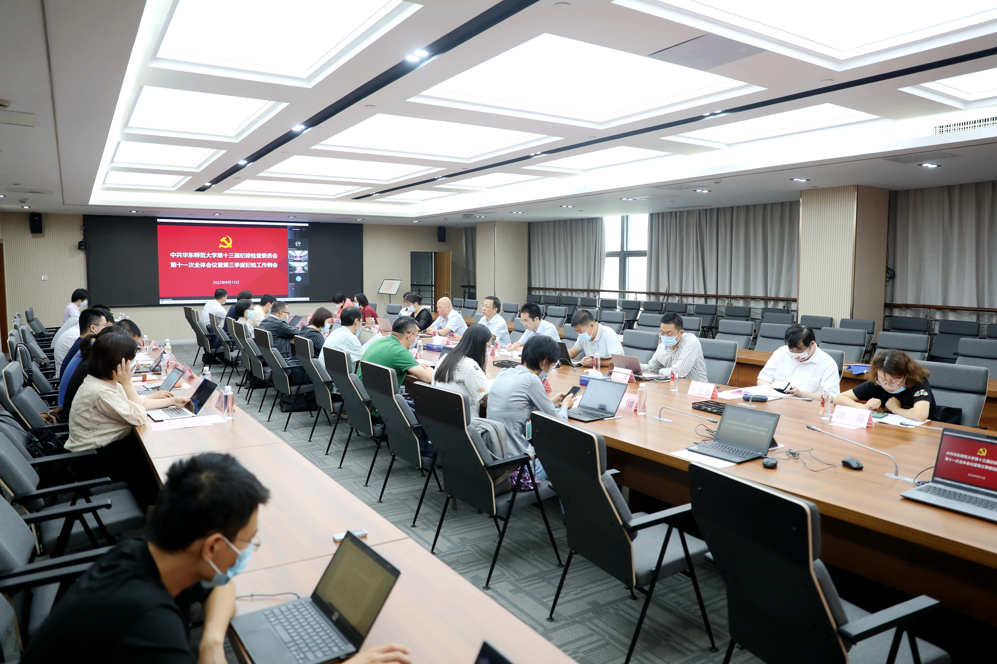 9月15日上午,华东师大纪委在校召开第十一次全体会议暨2022年第三季度纪检工作例会。校党委副书记、纪委书记曹友谊主持会议并讲话。校纪委委员出席会议,院系级纪委书记、院系级党组织纪检员,纪委办监察处巡察办专职干部,分别在两校区会场参加会议。校纪委召开第十一次全体会议暨第三季度纪检工作例会(闵行校区)校纪委召开第十一次全体会议暨第三季度纪检工作例会(普陀校区) 曹友谊在讲话中强调,学校纪委2022年下...