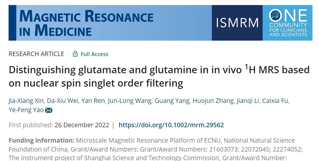 12月26日,华东师大物理与电子科学学院、上海市磁共振重点实验室姚叶锋、魏达秀团队联合华山医院任彦教授团队、长海医院张火俊团队、西门子医疗,在医学磁共振期刊 Magnetic Resonance in Medicine 发表了题为“Distinguishing glutamate and glutamine in in vivo 1H MRS based on nuclear spin singlet order filtering”(DOI: 10.1002/mrm.29562)的研究论文。该文研究工作报道了一种新型的、可对人体内生化分子进行靶向...