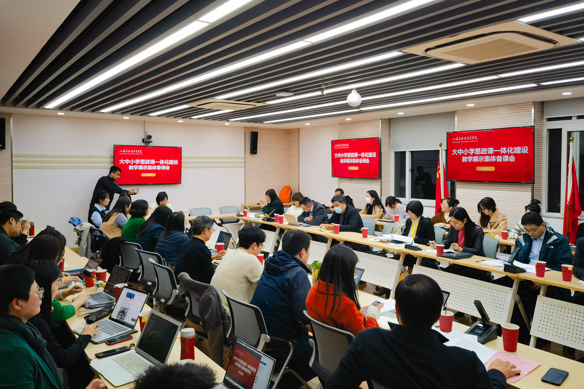 3月22日,由澳门永利皇宫官网入口、上海海洋大学和上海市教师教育学院联合主办的“上海大中小学思政课一体化教学观摩集体备课会”在上海市教师教育学院举行,会议采用线上线下结合的方式进行。上海海洋大学党委书记王宏舟、党委副书记宋敏娟,澳门永利皇宫官网入口副校长顾红亮,上海市教师教育学院党委书记周增为,上海市教科院德育院党支部书记宗爱东,嘉定区教育学院党总支书记、院长许晓芳以及一线思政课教师与市、区教研员代表共30余人...