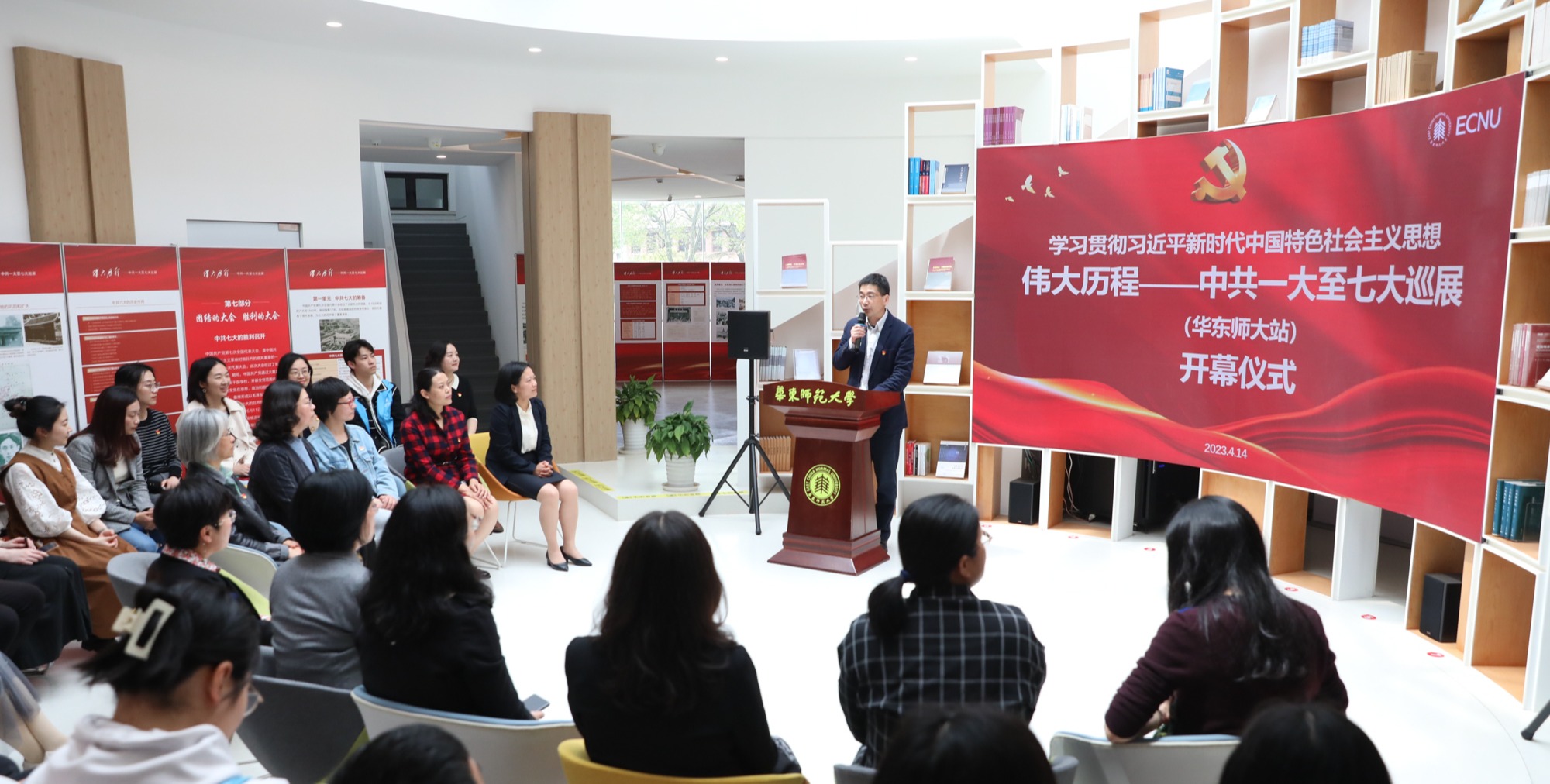 为深入学习贯彻习近平新时代中国特色社会主义思想,4月14日下午,“伟大历程——中共一大至七大巡展(华东师大站)”开幕仪式在华东师大普陀校区举行。中共上海市委党史研究室,华东师大党委组织部、党委宣传部、党委教师工作部、校团委等单位相关负责人与马克思主义学院师生代表参加此次活动。仪式由党校常务副校长兼党委组织部副部长韩春红主持。学习贯彻习近平新时代中国特色社会主义思想“伟大历程——中共一大至七大巡...
