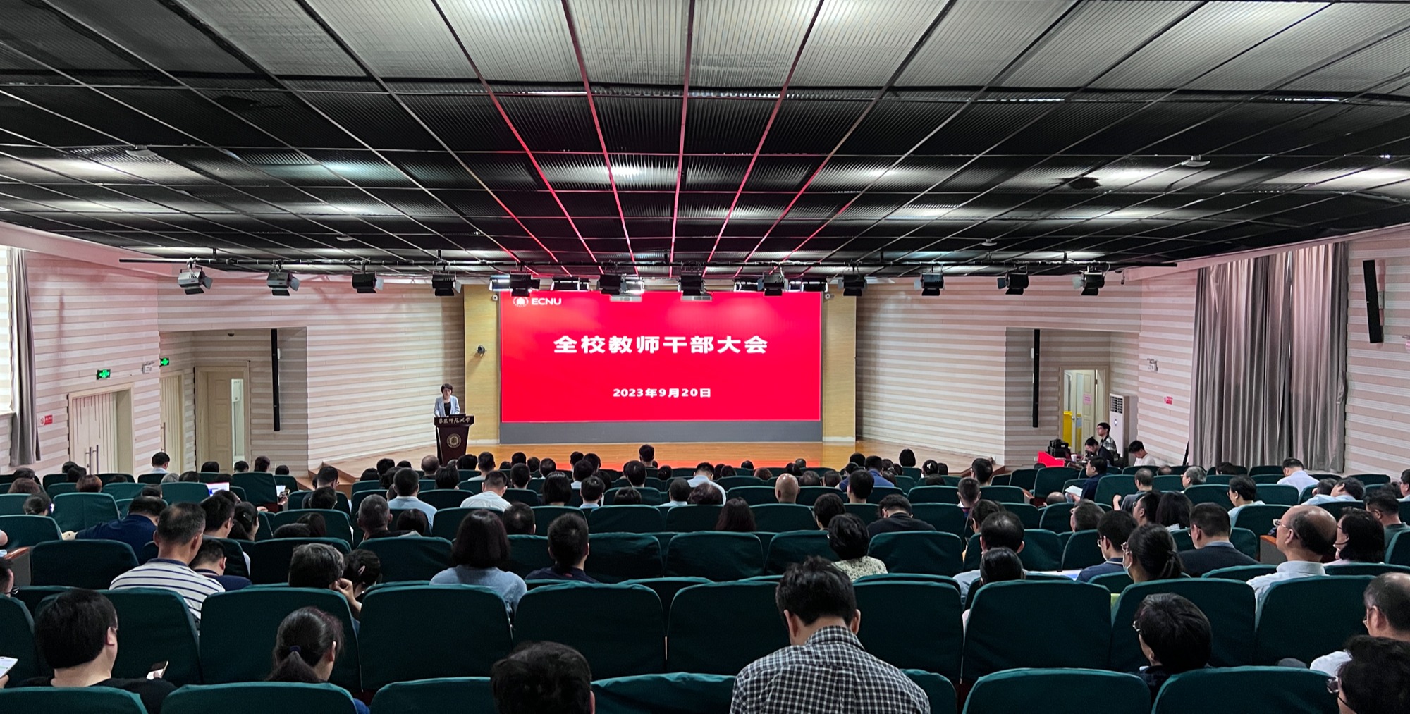 9月20日下午,华东师大召开全校教师干部大会,总结一个阶段以来学校的工作,对新学期学校重点任务进行部署。会议由校党委书记梅兵主持。 会上,校党委常委、副校长雷启立介绍了学校“十四五”发展规划实施的中期进展和“双一流”建设的中期自评情况,并对形势和差距进行了分析研判,明确了学校进一步推进改革发展的着力点。 校党委常委、副校长顾红亮介绍了学校第十四次党代会党委报告、纪委工作报告的起草情况,党代...