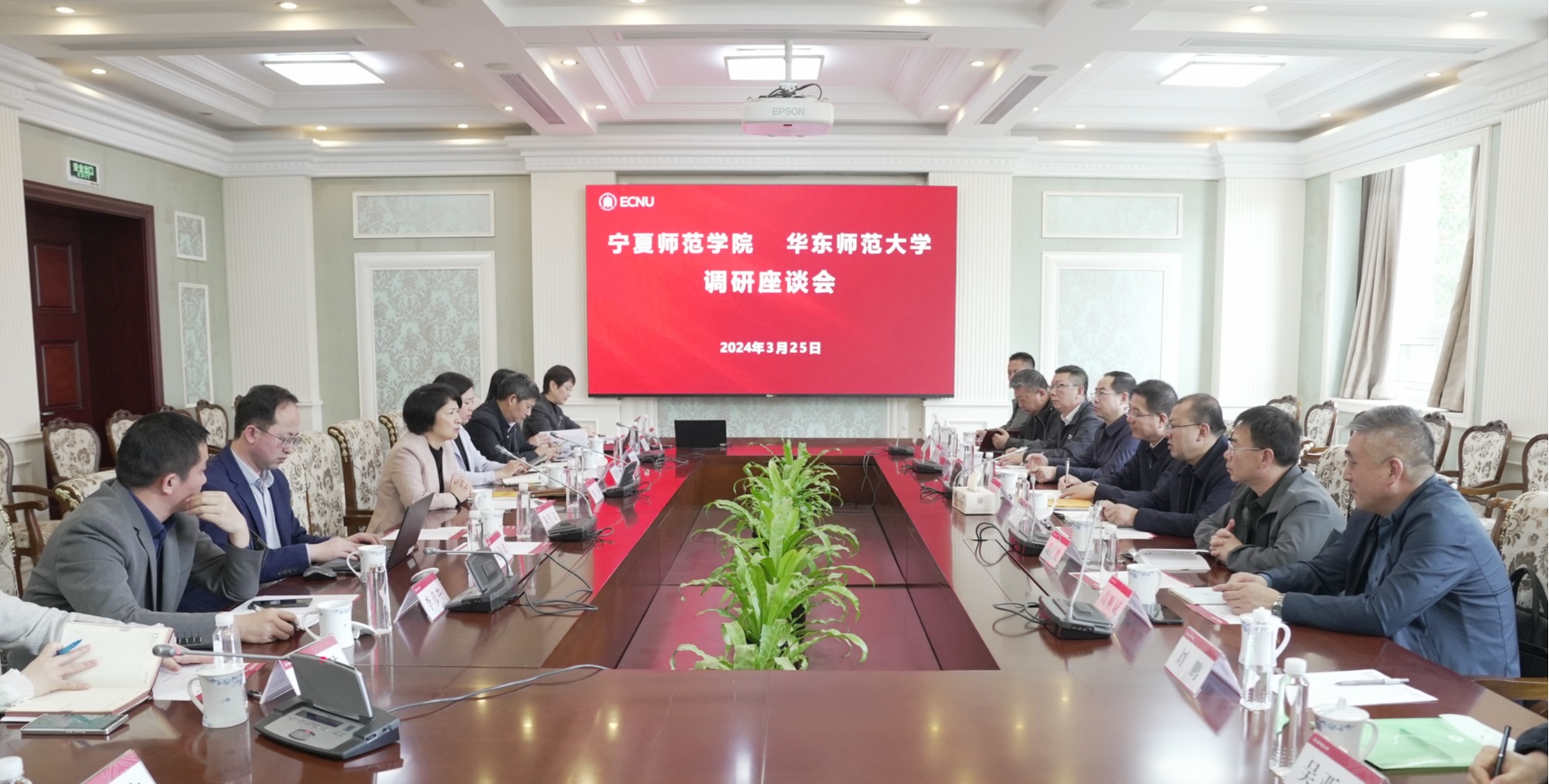 3月25日,宁夏师范学院党委副书记、校长王宏伟,党委常委、副校长田富军一行来校调研。校党委书记梅兵,党委常委、组织部部长朱军文,党委常委、统战部部长、学校办主任张惠虹及双方相关职能部门负责人出席座谈会。宁夏师范学院代表团访问华东师大宁夏师范学院一行参观华东师大校史馆 双方围绕建设省部级重点与优势特色学科和一流专业、聘请“六盘山学者”特聘教授和青年人才、筹建相关研究平台宁夏分中心、联合举办“六...
