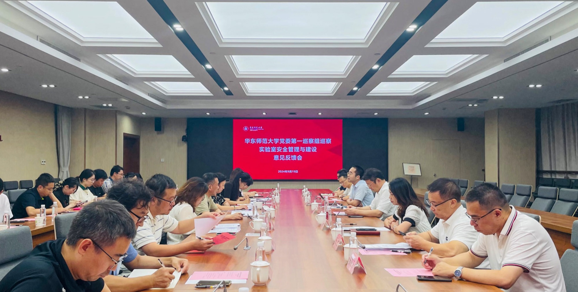9月25日下午,华东师大在闵行校区召开书记例会,对近期重点工作进行通报和部署。校党委书记梅兵,校党委副书记曹友谊、孟钟捷出席会议。会议由孟钟捷主持。书记例会部署近期重点工作 会上,曹友谊通报了纪检工作;孟钟捷通报了近期宣传思想文化工作和安全稳定工作;校党委常委、组织部部长朱军文通报了党纪学习教育总结情况;校党委常委、统战部部长、学校办公室主任张惠虹通报了新签报系统情况。 结合学习贯彻党的二...
