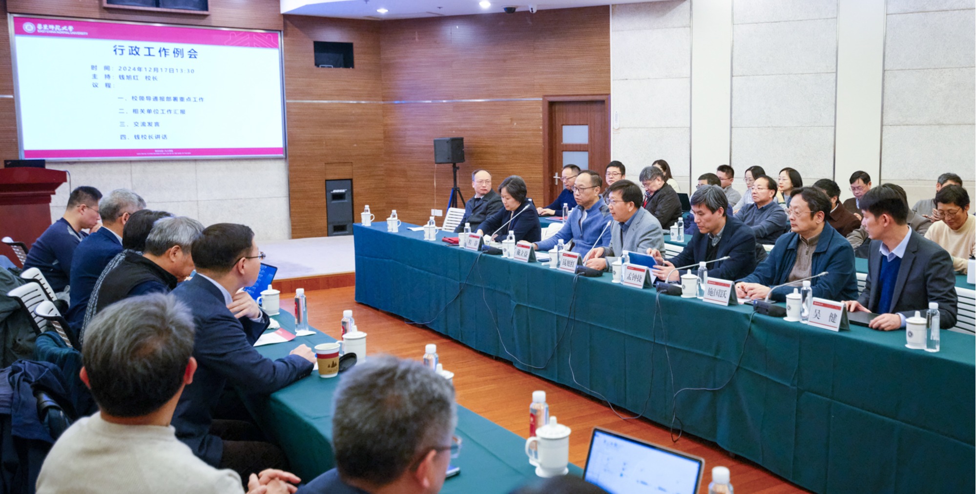 12月17日下午,行政工作例会在普陀校区召开,通报和部署学校近期重点工作。校长钱旭红,校党委副书记孟钟捷,副校长戴立益、施国跃、程静,校长助理吴健,以及机关行政部门主要负责人、教学科研实体单位行政主要负责人等出席会议。会议由钱旭红主持。行政工作例会部署近期重点工作 会议通报了管理服务队伍编制优化工作,本研招生培养工作,理科科研及装备平台工作情况,以及2025年校内预算、“数智跃升计划”、文科科研...